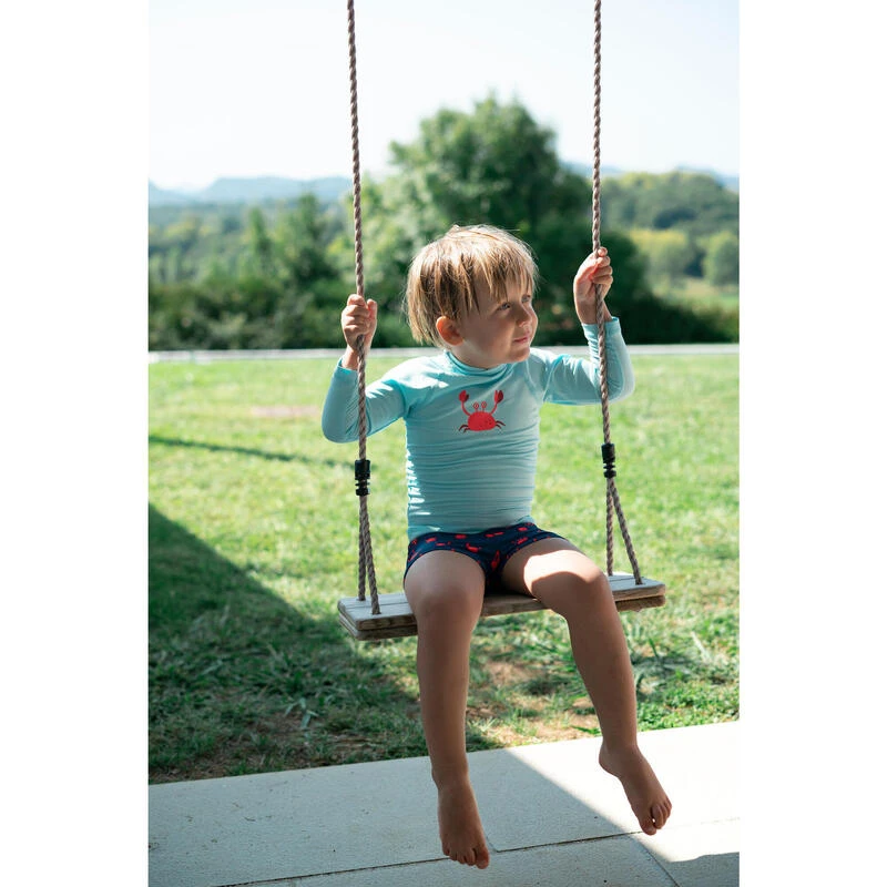 Nos équipes de conception ont crée ce T-shirt anti UV manches longues pour protéger les bébés du soleil pendant leurs activités aquatiques et balnéaires.Ce T-shirt anti UV protège votre enfant des UV même dans l’eau avec un maximum de couvrance. Il s’enfile facilement grâce aux pressions à l’arrière du col.